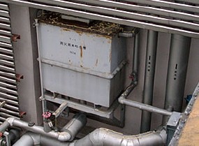 屋上の看板塔屋の陰になっている消火栓用の水槽の上部を巣にしていました。