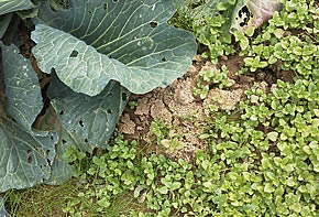 | リンゴ畑に出没していたモグラが、隣接しているキャベツ畝に、移動した(逃げ出した)と思われます |